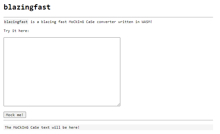 blazingfastis a blazing fast MoCkInG CaSe converter written in WASM!