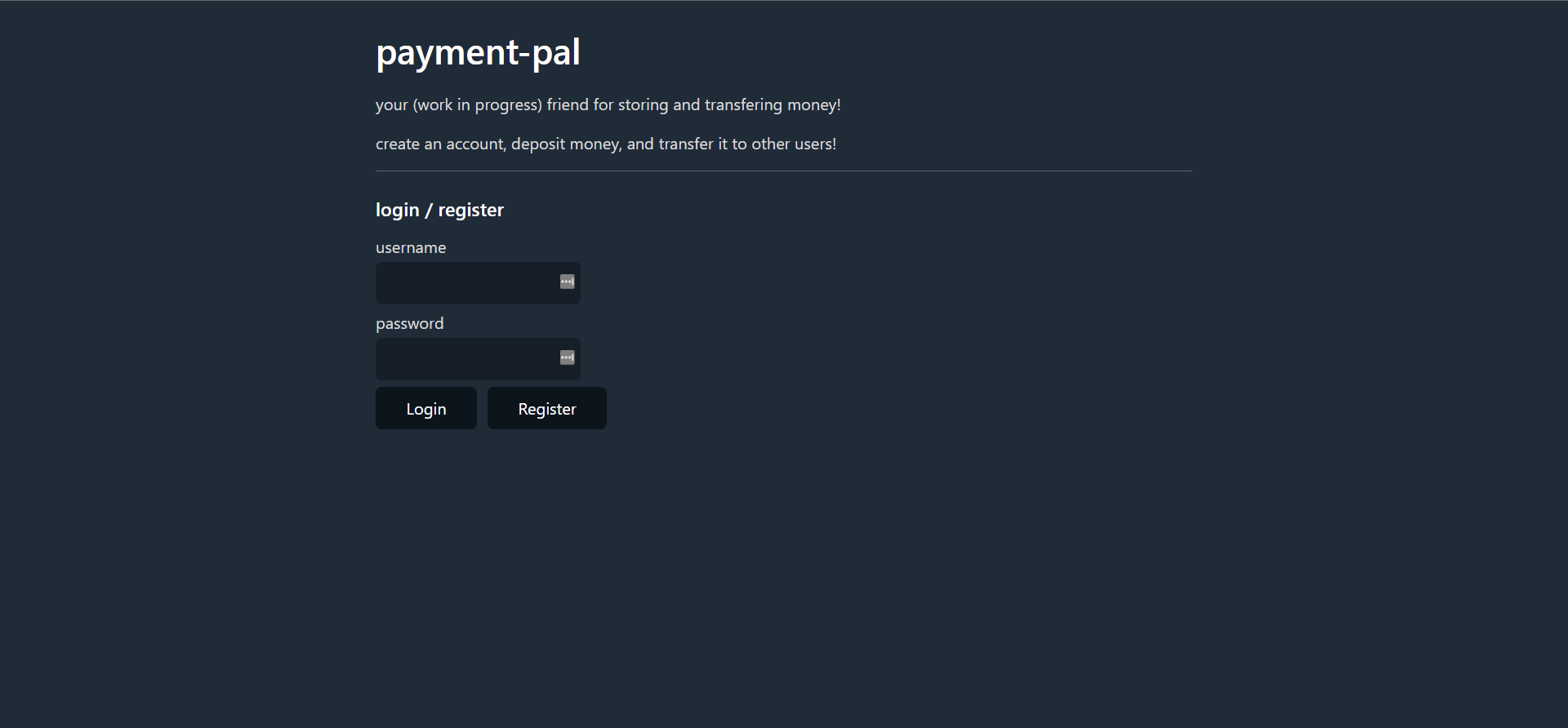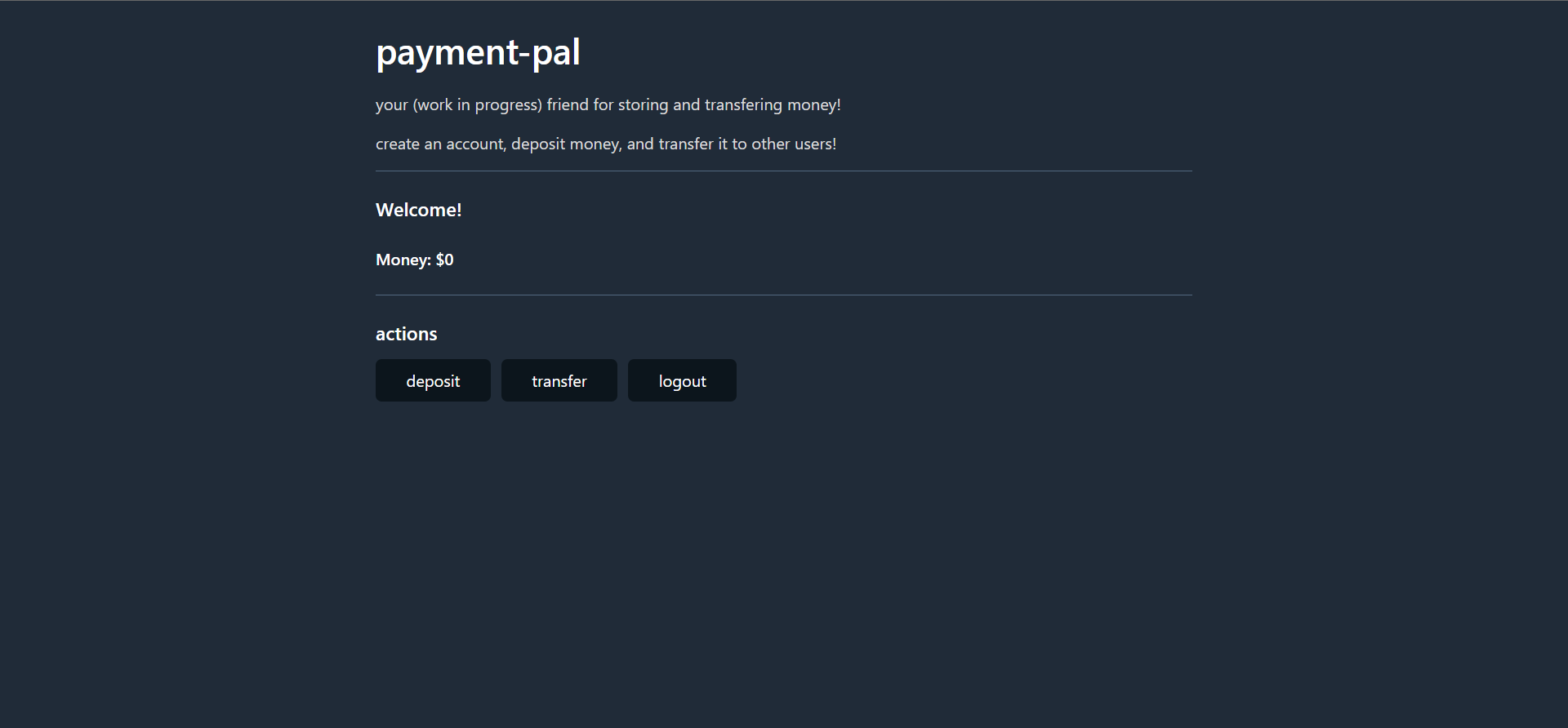 payment-pal was a simple app that let you register, deposit money, and transfer money to other users!