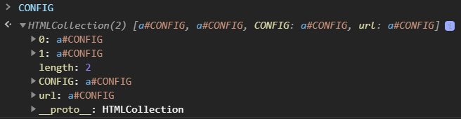 Now, how do we change CONFIG.url to point to a specific place? Well, we can exploit HTML collections. Following this article, if we do: